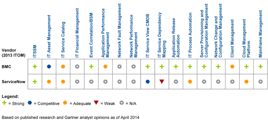 On July 7, Gartner released a report entitled, “How to Decide Between BMC and ServiceNow for ITSM and Beyond.” The report reviewed current offerings from both as they apply to IT Service Support Management (ITSSM) and IT Operations Management (ITOM). Not surprisingly, Gartner scored BMC much higher in ITOM and ServiceNow (SNOW) higher in the use of forms and workflow applications that support non-IT needs. The report even suggested that larger enterprises consider using both products, presumably SNOW for service support and BMC for service assurance. Here are other takeaways and observations: